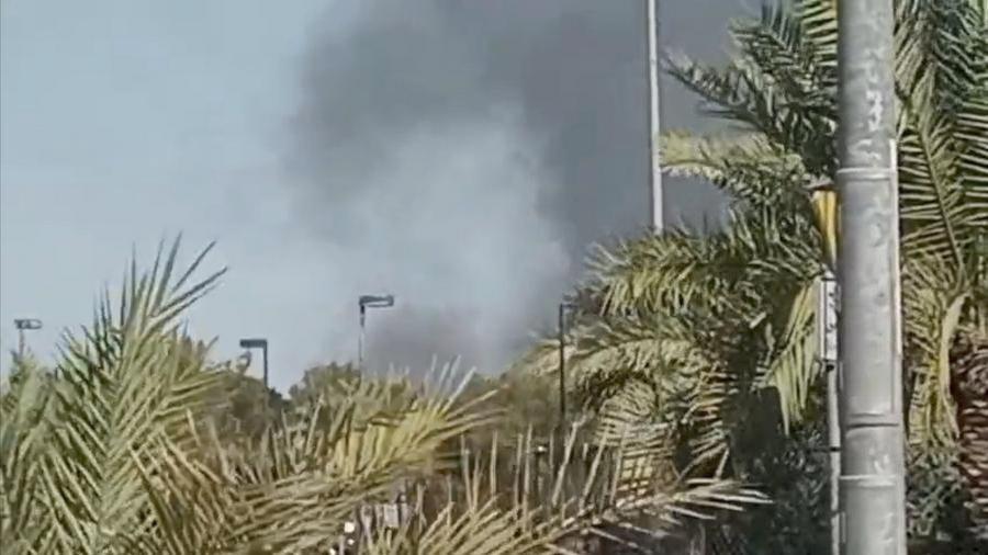 This screenshot from a video clip taken with a mobile phone shows smoke billowing from an area near the U.S. Embassy in Kuwait's Hawalli Governorate, March 2, 2026. (Xinhua)