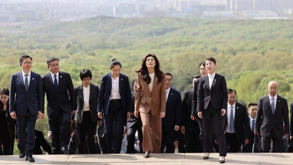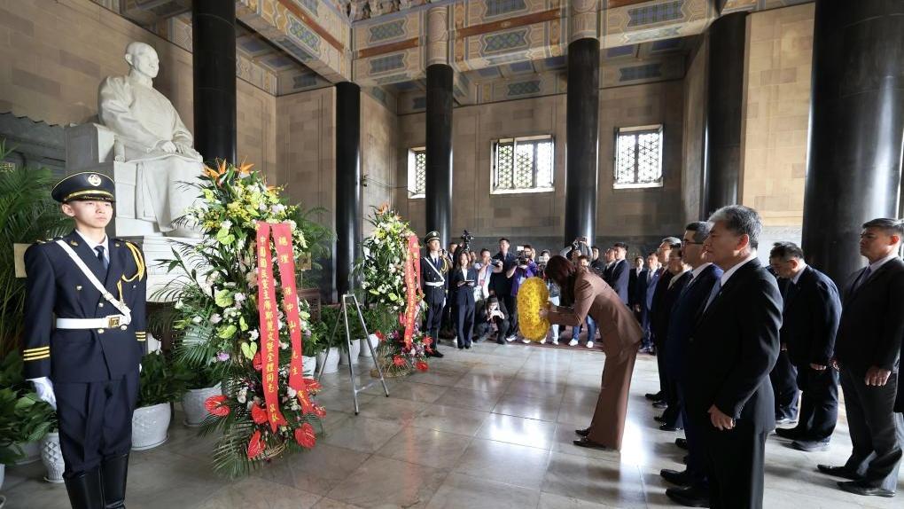 Cheng Li-wun, chairwoman of the Chinese Kuomintang (KMT) party, leads a KMT delegation to pay homage to the Sun Yat-sen Mausoleum in Nanjing, east China's Jiangsu Province, April 8, 2026. (Xinhua/Xing Guangli)